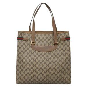 GUCCI GG Supreme Web Sherry Line Tote Bag PVC Beige Gold 39 02 091 Auth 135062