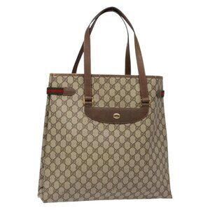 GUCCI GG Supreme Web Sherry Line Tote Bag PVC Beige Gold 39 02 091 Auth ep10316