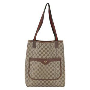 GUCCI GG Supreme Web Sherry Line Tote Bag PVC Beige Red 89 02 003 Auth 145657