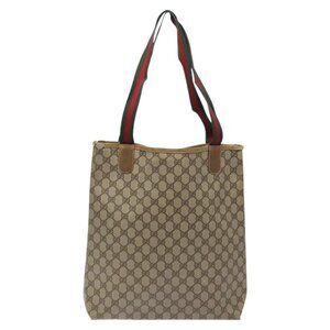 GUCCI GG Supreme Web Sherry Line Tote Bag PVC Red Beige