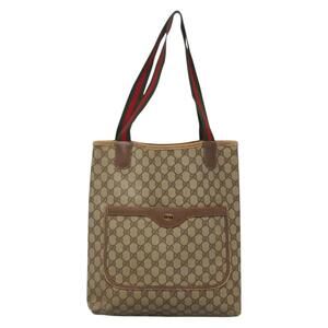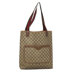 GUCCI GG Supreme Web Sherry Line Tote Bag Pvc Beige Red 39 02 003