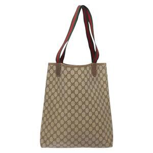 GUCCI GG Supreme Web Sherry Line Tote Bag Pvc Beige Red 39 02 003