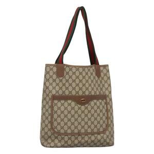 GUCCI GG Supreme Web Sherry Line Tote Bag Pvc Beige Red 39 02 003