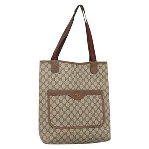 GUCCI GG Supreme Web Sherry Line Tote Bag Pvc Beige Red 39 02 003