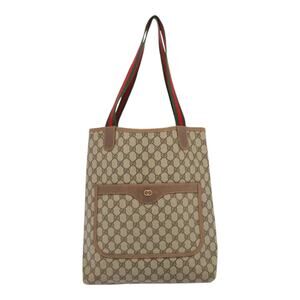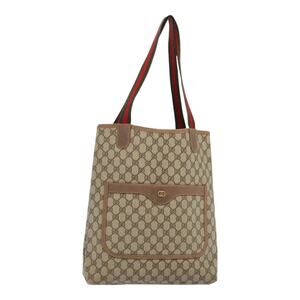 GUCCI GG Supreme Web Sherry Line Tote Bag Pvc Leather Beige