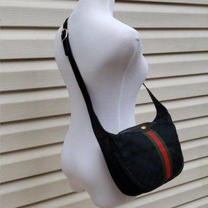 GUCCI GG WEB BLACK CANVAS STRIPE OPHIDIA SHOULDER BAG