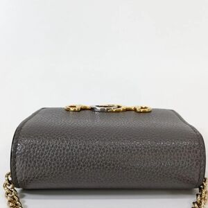 Introducing the GUCCI GG Zumi Compact Wallet Wristlet. This mini bi-fold wallet features luxurious gray leather with a two-tone logo and gold hardware, creating a sophisticated look. The gold chain can be removed, making it versatile for any occasion. Comes with a box and dustbag for safekeeping.