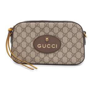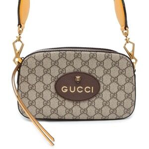 GUCCI GG logo leather handbag Boston bag camel
