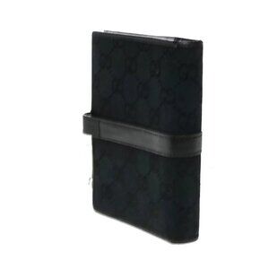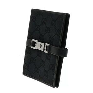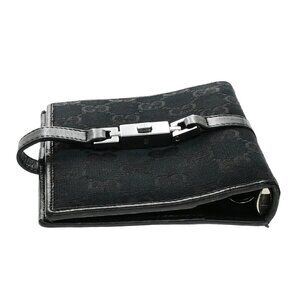 GUCCI GG pattern Jackie Agenda PM Day Planner Cover Canvas Leather Black 07ED677