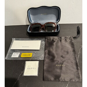 GUCCI GG0141S 002 Women's Sunglasses Rectangular Square Havana AUTHENTIC
