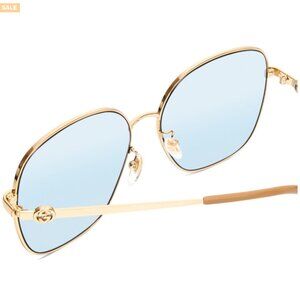 GUCCI GG1089SA-004 Womens Oversized Designer Sunglasses in Gold & Tan/Blue 61 mm