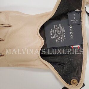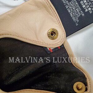 GUCCI GLOVES 477970 BEIGE LEATHER HEART CUT-OUT CAT FELINE HEAD