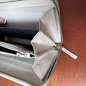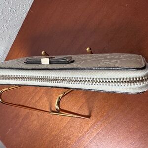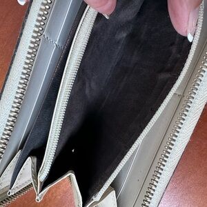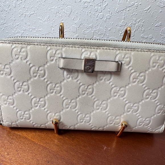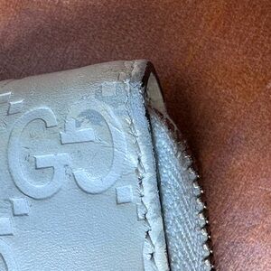 Splendid wallet from Gucci in very good condition. The ecru white leather with monogram print is in very good condition. Micro temporal wear in some places, especially at corners.
