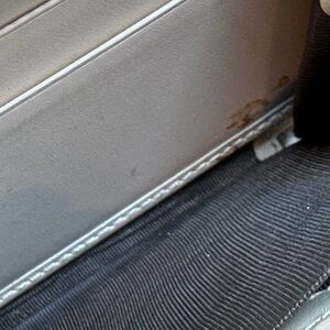 (See photos. )The interior is in very good general condition (micro wear in an internal pocket) and some stain in couple places. Bow tie on the front with interlocking metal badge. Really very chic and very classy.