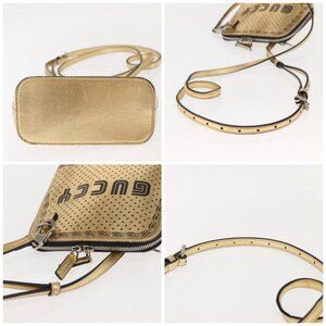 GUCCI GUCCY Print GUCCIxSEGA Bag Leather Gold Silver 511189 Auth bs30126