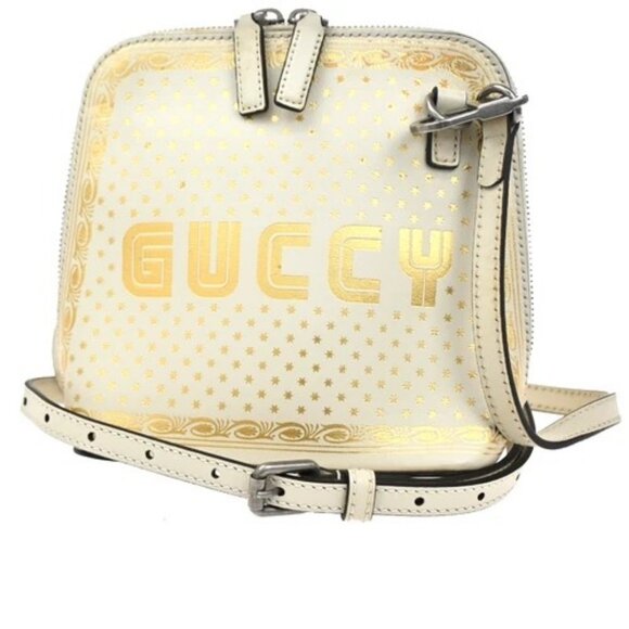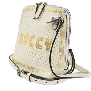 GUCCI GUCCY SEGA Print Leather Mini Shoulder Bag White Italy SHW 73CA310