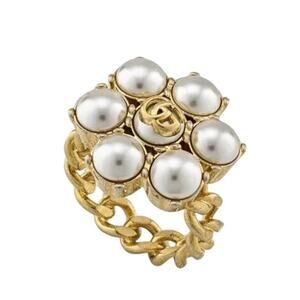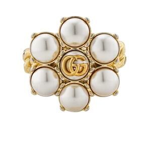 A signature emblem of the House, the initials of its Founder Guccio Gucci define this ring. The white glass pearls add a retro feel as they surround the Double G in the shape of a flower.
