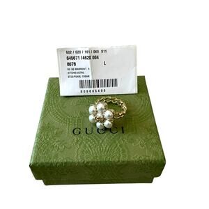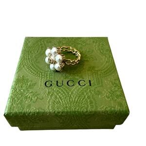 Brand New GUCCI Glass Pearl Double G-Ring 645671 I4620 8078 Size L
