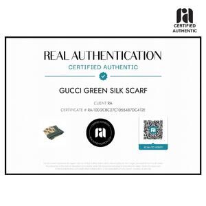 Elevate your wardrobe with this highly sought-after Gucci green silk scarf, a timeless piece that adds instant luxury to any outfit.