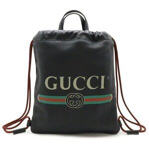 GUCCI Gucci print drawstring backpack/tote bag style leather black 523586