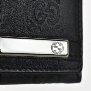 "Guccissima" - Black, leather "GG" Logo card case/wallet accented by dark silver, metal "GG" logo medallion