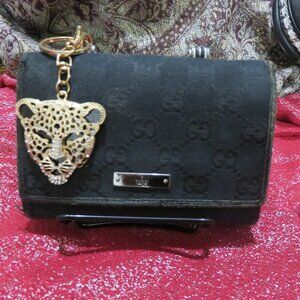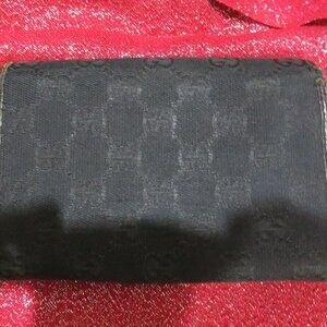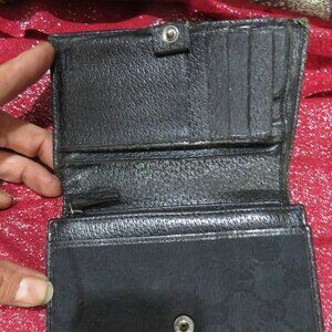 Super Cute! Gucci Guccissima Black Canvas wallet with multiple card slots and open organizers.