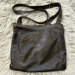 GUCCI Guccissima Crossbody Bag. Great Condition- minor signs of wear; some discoloration/fading on exterior leather, minor scuffs, leather has minor wrinkling on corners, wear on hardware. Please review all photos