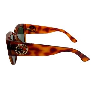 Gucci Havana / Gold GG Logo Square Frame Acetate Sunglasses