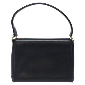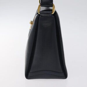 GUCCI Hand Bag Leather Navy Gold Auth e