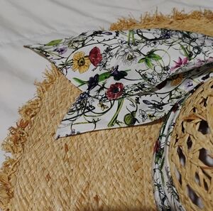 GUCCI Straw Vacation Hat with Bandana Scarf
