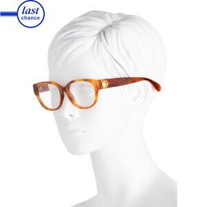 tortoise shell frames, brand logo temple accent, gold tone hardware, case, pouch and cleaning cloth included, case may vary
