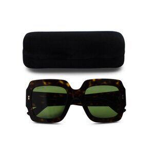 category 3 filter protection, thick frame, gold tone brand logo temple details, tortoise shell design, case and cleaning cloth included, case may vary, pouch included