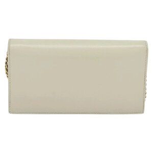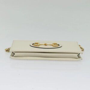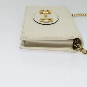 GUCCI Horsebit Chain Long Wallet Leather White Gold