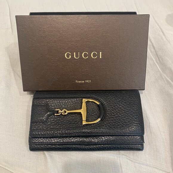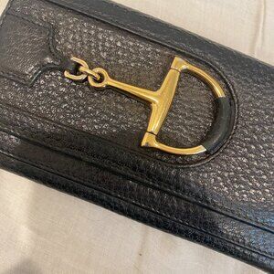 Flawless GUCCI horsebit wallet made out of soft black pebbled leather. An absolute stunner with only some minor corner rub.