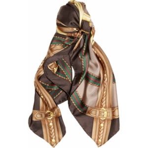 GUCCI ICONIC EQUESTRIAN HORSEBIT BROWN BEIGE GREEN SILK SCARF
