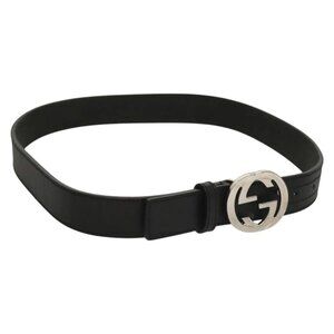 GUCCI Interlocking Belt Leather 33.1"" Black Gold