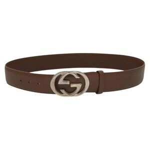 GUCCI Interlocking Belt Leather 33.1"" Black Gold