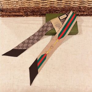 Brand New, Never Worn - GUCCI Interlocking G Horsebit Web Print Silk Neck Bow!!