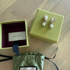 @sarah23400 under product details for Style 753926 J1D51 8486 (on the Gucci website) it says “antique gold-toned metal with white resin drop pearl with crystals”.