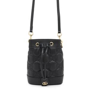 GUCCI Interlocking Shoulder Bag Leather Black Gold 007 58 0093 Auth ep11276