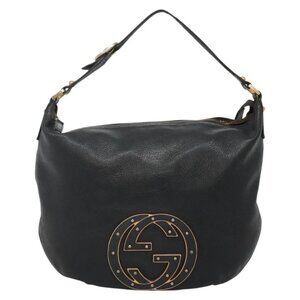 GUCCI Interlocking Shoulder Bag Leather Black Gold 121548 Auth 139643