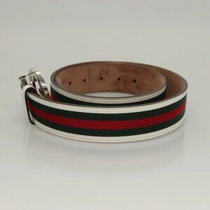 GUCCI Interlocking Web Sherry Line Belt Leather 43.3"" Green 114984 Auth sw1219
