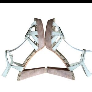Step out in style with these chic white strappy wedge sandals. Perfect for any occasion, these shoes offer both comfort and elegance.