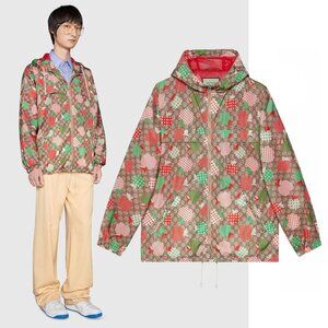 GUCCI JACKET MENS GG SUPREME APPLE HEARTS LES POMMES PRINT HOODED