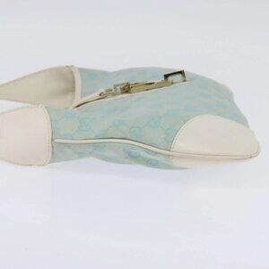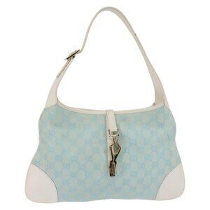 GUCCI Jackie GG Canvas Shoulder Bag Light Blue Gold 001 4057 Auth ki6112