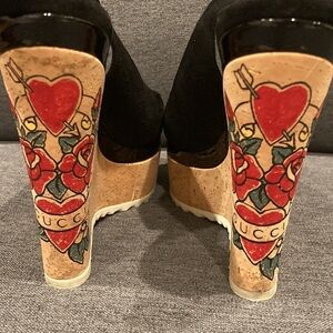 GUCCI KID SCAMOS/SUGHERO/TATTOO CUOR NATURALE 36+ wedge heel. Excellent condition. Box and dust bags included. Originally $780