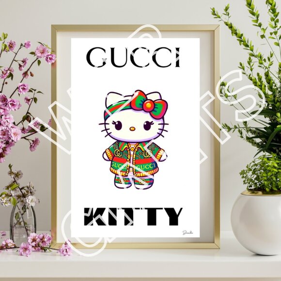 The Gucci Kitty 11x17 Art Print is a stylish and unique piece featuring the iconic Gucci logo and Hello Kitty design. Perfect for fans of both Gucci and Hello Kitty, this art print brings a touch of luxury and playful whimsy to any space.