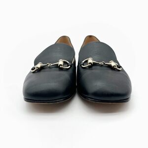 GUCCI Kira Horsebit Black Loafer Size 38 Leather Slip On Ballet Flats Almond Toe