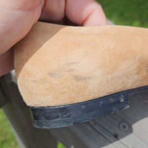The suede is soft and buttery, but there are some dark wear marks on it. I gave it a light cleaning with a suede brush but I am not an experienced suede cleaner, so I did not try hard or long. Could probably be easily cleaned by someone who knows what they are doing.