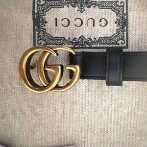 GUCCI LEATHER BELT WITH DOUBLE G BUCKLE